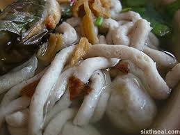 makan kat sini, bila u olls dah order Set B ke Set C ke, nak add on pape pon order jelah, janji bayar.. macam kitorang wajib add on Fish Noodle... ya Allah, yang ni dengar namanya pon aku dah terasa-rasa kat anak tekak aku, sebabnya sedap gila! recommended lah kat u olls... nak tau rope dia?ini i google jee.. camnilah ropenya.. teksture dia mungkin kurang menarik sebab besar gemuk camtu.. tapi bila makan memang terasa ikan dia, kenyal-kenyal..tak tau nak describe tapi memang sedap!